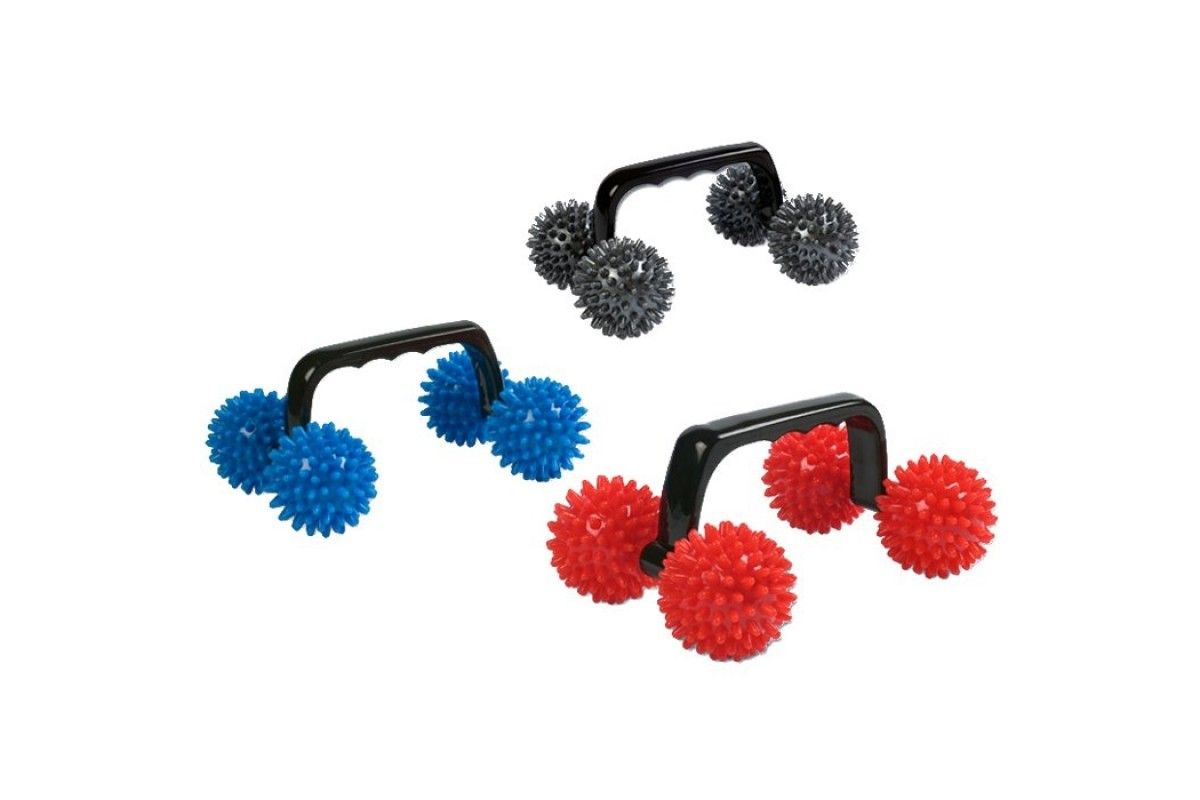 Массажер ТЕТРАБОЛ состоит из 2-х пар пупырчатых шаров, каждый шар из которых может быть снят. И шары могут использоваться как еще одни массажеры, например, для кисти рук или стоп ног.