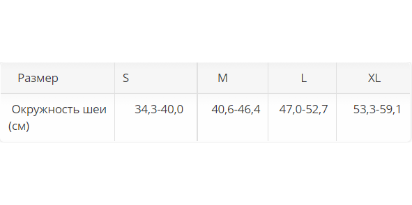 Измеряется окружность шеи. Размер определяется в середине заданных рамок.